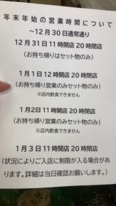 年末年始の期間中、画像の通りセットメニューの内容が変更になります。